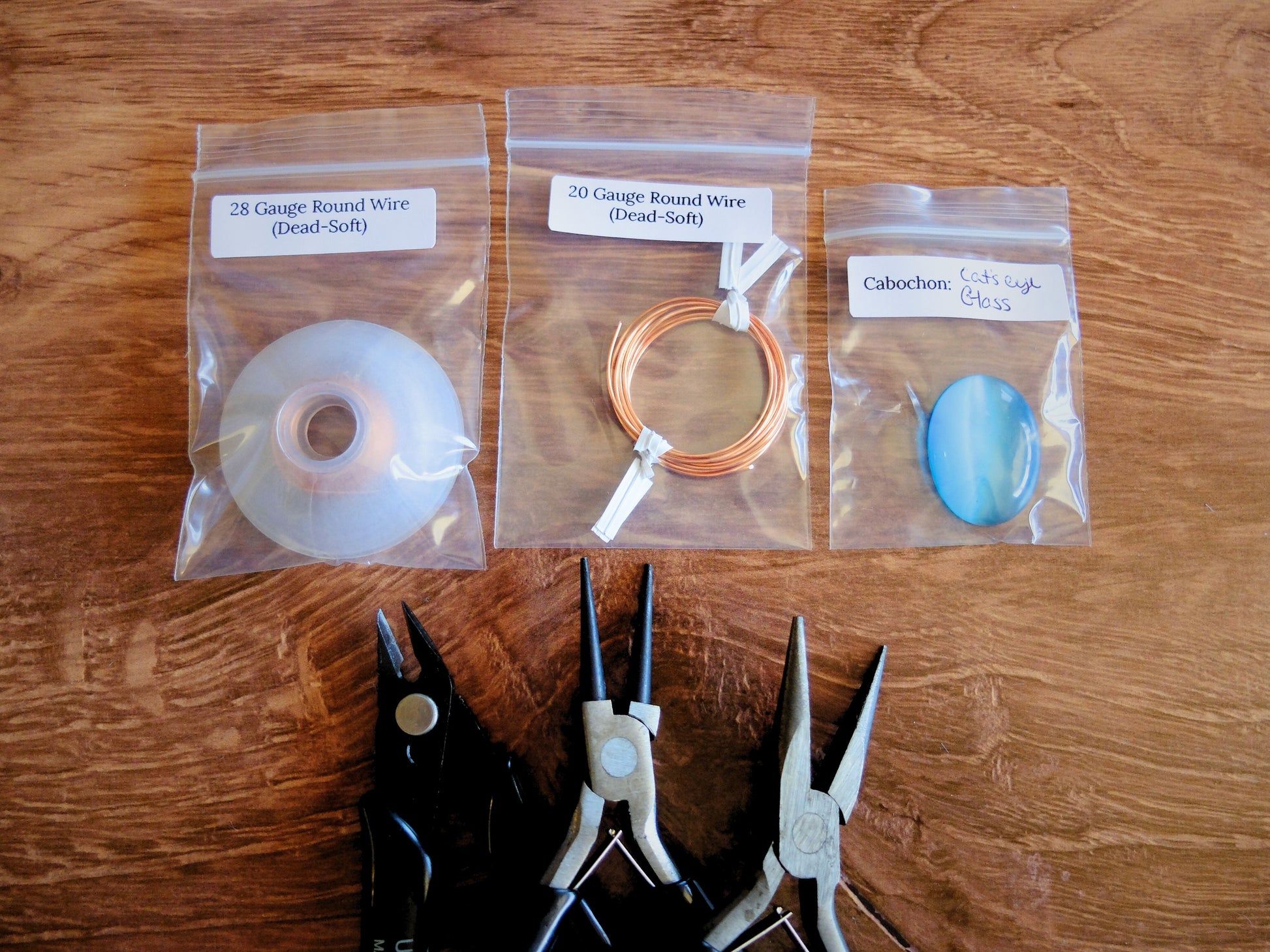 - Materials: Bare copper wire, Oval Cabochon, Chain Nose Pliers, Round Nose Pliers and Flush Cutters.